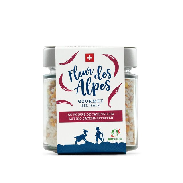 Fleurs des Alpes sel gourmet avec poivre de Cayenne Bio suisse